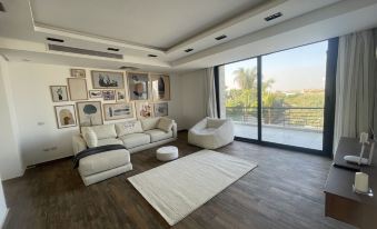 Big and comfortable living room and sitting area , dinning room equipped with a big table to gather all the family members, and TV room with big L-shape Sofa, all overlooking the garden with fantastic natural light flooding the whole area.