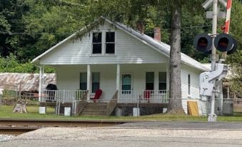I booked this in a rush and did not read the reviews so we were surprised to learn that many trains pass RIGHT in front of the house and they blow LOUD horns right in front of you, including throughout the night. We were, however, like other guests reported, soothed right back to sleep by the sound of the train after the whistles blew the first night and we slept right through them the second night. We loved the Adirondack chairs on the porch as we sat and listened to the river. The bed was comfortable and we had everything we needed - but bring your own coffee if you need it in the morning.