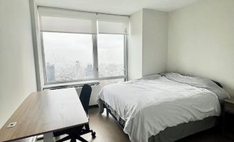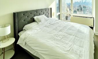 Nestled in the heart of New York, this apartment has an unbeatable unobstructed south facing view of Manhattan at one of the highest floors. You can pay for the Ritz-Carlton nearby with less space and not see these Manhattan views! Apartment comes with 2 bedrooms featuring a king and queen bed, along with separate 2 bathrooms with bathtubs and hair dryer, this space is perfect for a small group or family. Enjoy the convenience of amenities like full kitchen, WiFi, AC, and building gym during your stay. Relax in the cozy living room with a large sofa for additional sleeping space. We hope you'll enjoy your stay with us in NYC!About pets:Pets allowed: cats less than 20 lbs per pet (limit 2 pets total).About checkOut:Check out before 12:00 PM.About children:Children allowed: ages 0-17.About customRules:Place dirty/outside shoes near the entrance. Feel free to use slippers in closet..Please leave door auto-unlocked for the cleaners/next guest when checking out, you can do this with a switch on the side of the lock.,Guests must be respond to host's questions, messages within a 24 hour period to maintain communication, especially leading up to check in date..About checkIn:Check in after 4:00 PM.About smoking:Smoking is not permitted.About minBookingAge:Minimum age to rent: 21.About events:No events allowed.