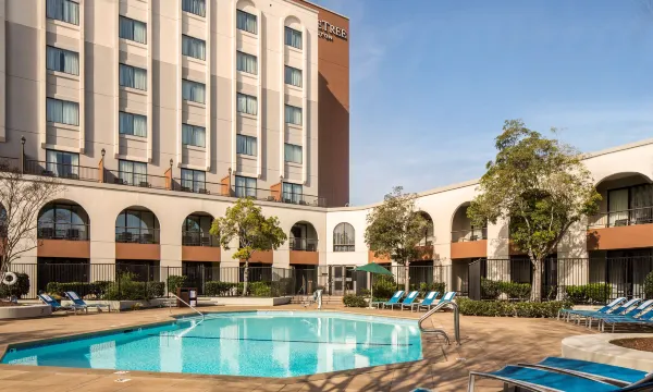 Choose from a variety of Guest Rooms at this Newark, CA hotel, some featuring a balcony or a patio with views of either the swimming pool or the lush gardens. Feel at home with luxurious furnishings and modern amenities, including WiFi and a spacious work desk.