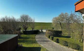 Between Bremerhaven and Cuxhaven - directly behind the North Sea dike - there is a charming holiday home with a view of the North Sea dike and the wide fields.