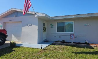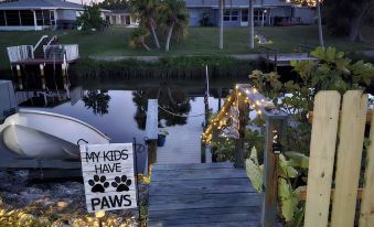 All New. Pet friendly cottage on canal. Fishing, Kayaking and boating from our dock. New beds in both bedrooms, completely refurnished. Everything has been updated, awesome screened in patio and fenced in back yard overlooking the canal. Located near the New Wellen Park, Spring training facility for the Atlanta Braves. Close to shopping, restaurants and beaches.About pets:Pets allowed: dogs (limit 2 total).About checkOut:Check out before 10:30 AM.About children:Children allowed: ages 0-17.About checkIn:Check in after 4:00 PM.About smoking:Smoking is not permitted.About minBookingAge:Minimum age to rent: 25.About events:No events allowed.