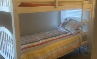 2 bedrooms: 2 bunk beds and 1 queen bed