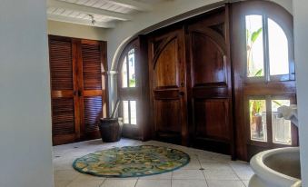 When you exit the French doors in the great room to the left you will find a queen guest room with en suite bathroom, and to the right you will find a guest room with twin beds and en suite bathroom. Both rooms have private balconies that overlook the Caribbean sea.