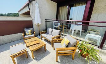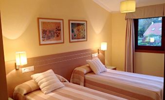 The nearest airport is Vigo Airport, just about 48 mins from hotel by car (70.5 km) away.Which airport is closest to FIRST LINE BEACH, SPA, SWIMMING POOLS, TENNIS, PADDLE, SQUASH, GARDEN, CHILDREN'S PLAYGROUND.?