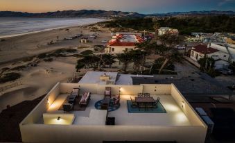 This brand-new oceanfront haven offers breathtaking views of white sand, Oceano dunes, and the Pacific Ocean. With 4 bedrooms, 3.5 baths, and two living spaces, it comfortably sleeps 10. Enjoy rooftop terrace panoramas, a gourmet kitchen, and a Tesla charger. Steps from the beach, this 2022-built gem is your gateway to Central Coast wonders, from Pismo Beach to Hearst Castle. Immerse yourself in California beach vibes for the vacation of a lifetime!