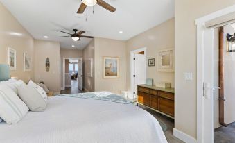 Guests have exclusive access to the entire property, including the beachfront patio, rooftop terrace, and attached 2-car garage with a Tesla charger. Enjoy two living rooms, a gourmet kitchen, a laundry room, and Smart TVs. The home is equipped with top-of-the-line Purple Mattresses, a Tempurpedic Cal King bed, and Wi-Fi. No pets are allowed due to allergies, and guests must be 25 or older to rent.