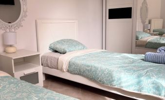 2 bedrooms: 2 single beds and 1 king bed