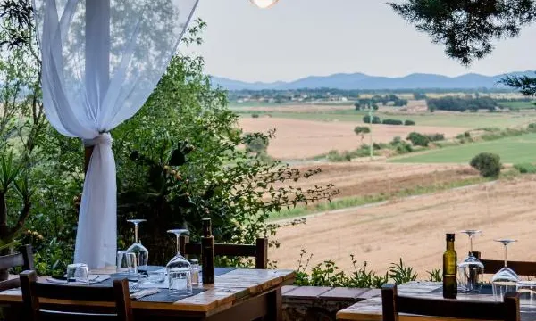 The location is lovely…overlooking the vineyard. Rustic tables outside nicely done. Nice lighting and attentive staff. The food was very good and reasonably priced…all locally sourced and lovely with the wine produced in the vineyard. The evening was spoilt by the music. Totally out of place with the setting and ruined the ambience totally. 80’s and 90’s pop music that was too loud and not in keeping with the surroundings. Would not return due to this but otherwise would totally recommend. It seems like the choice of the son on the owner who we found to be abrupt with us - presenting the total bill without a receipt, which when I asked for it was incorrect when looking at the detail. We were told that we then couldn’t pay at the table but would have to go up to the reception. Ridiculous.
