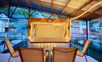 Only a few steps away from the water with an open, lighted dock. Enjoy the entire house for your friends or family to get away and enjoy the peaceful lake life. Great view, wrap-around deck, with close parking. Entertain on the dock that has a seating area, bar, and plenty of space to relax.