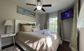 3 bedrooms: 2 single beds 1 queen bed and 1 king bed