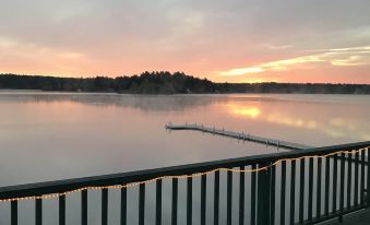 Step onto our wrap-around porch to breathe in the fresh air and take in spectacular views of the lake. In the off-season, there is virtually no activity on the lake. Perhaps the only spotting might be of the nesting pair of bald eagles from the island across the way - they often take flight overhead, and have been known to land in the tall trees near our property.