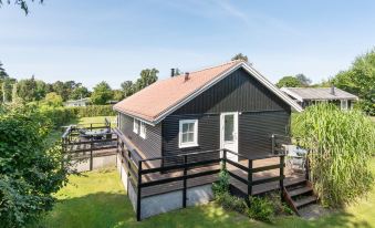 Søtt feriehus med mange sittemuligheter ute, slik at man alltid kan plassere seg i sol eller skygge etter behov. Carport og anneks.Et par minutters gange fra en lang sandstrand, med veldig gode bademuligheter. Ligger rett ved utfluktstedet Ænebærodden, s