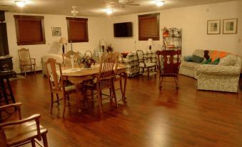 Located In the back yard of a c.1830 (chestnut) log house, this recently transformed barn has three bedrooms, two bathrooms, a giant kitchen and a great room which can be used for gatherings, seminars, or group meetings and fun get togethers.