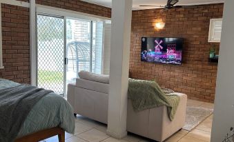Forget your worries in this spacious & serene space, Right on tallebudgra beach. It’s the perfect place to unwind and relax with the water at your door step. Your space is ready for you with a complete kitchen for cooking. Pet friendly with secure yard & there is also a fold out couch or travel cot available for the kids on request