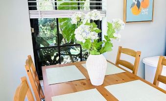 The Oasis is a spacious, fully equipped, clean and modern, pet friendly, private guest house, with a large kitchen/dining area, living room area and King size bed, as well as two twin inflatable beds, which can sleep an additional 2 guests (Add. cost per guest) The guest house looks out to a large saltwater pool that is shared with the main house.