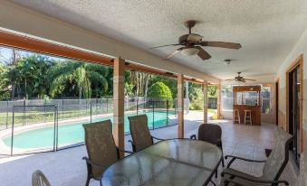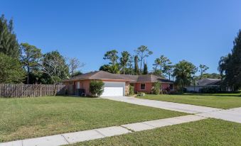 Enjoy the spacious 3100 sq ft. home with a large fenced backyard in a quiet neighborhood, 3 large bedrooms, and a study. Enjoy the Florida room, extended patio, bar facing pool, barbecue grill with gas, laundry room, garage with room for 1 car, and kitchen with basic utensils/appliances (coffee maker, dishwasher, refrigerator, microwave). cable TV, unlimited Wi-Fi, Roku access Netflix, and more channels (self-pay for pay channels). Just 6 miles from the beach and 13 miles to Palm Bch Airport.About pets:No pets allowed.About checkOut:Check out before 11:00 AM.About children:Children allowed: ages 0-17.About checkIn:Check in after 4:00 PM.About smoking:Smoking is not permitted.About minBookingAge:Minimum age to rent: 21.About events:No events allowed.