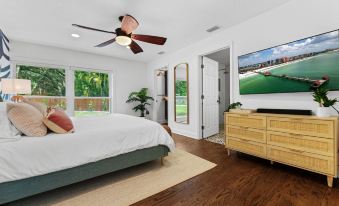 Stylish home with all new baths & bedrooms. Enjoy the poolside, fire pit & backyard full of lush greenery & fun games! Minutes to Honeymoon Beach & Caladesi Island open for sunbathing & water sports. Near historic downtown Dunedin with cute shops, cafes, restaurants & cultural events. The area has a number of top-notch golf courses and trails. Palm Harbor's welcoming community & mild climate make it an ideal getaway for those seeking outdoor adventures, cultural experiences, and coastal beauty.About pets:No pets allowed.About checkOut:Check out before 11:00 AM.About children:Children allowed: ages 0-17.About checkIn:Check in after 4:00 PM.About smoking:Smoking is not permitted.About minBookingAge:Minimum age to rent: 21.About events:No events allowed.