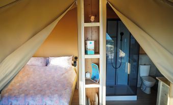 Ho avuto il piacere di trascorrere 3 giorni in questo splendido glamping e non posso che condividere la mia esperienza entusiastica. Fin dal momento del nostro arrivo, siamo stati accolti con un calore e una cordialità che ci hanno fatto sentire immediatamente a casa. Le tende, ben curate, erano una combinazione perfetta di comfort moderno e natura selvaggia. Ogni dettaglio era curato nei minimi particolari: lenzuola morbide e profumate, arredi eleganti e funzionali, e una vista che ci ha lasciati senza fiato. La nostra tenda era dotata di ogni comodità immaginabile (kit cortesia di ogni tipo) , compreso un bagno impeccabilmente pulito . La posizione del glamping è semplicemente invidiabile. Immerso nella natura, ci ha offerto una tranquillità e un senso di pace che raramente si trovano altrove. La colazione, che ci aspettava (ancora calda) ogni mattina in una cesta fuori dalla nostra tenda, era un'esperienza a sé stante. Prodotti freschi e locali, e molto abbondanti. Il personale del glamping merita una menzione speciale. Sempre disponibile e attento, è riuscito a rendere il nostro soggiorno ancora più piacevole con i suoi consigli e la sua gentilezza. Ogni nostra richiesta è stata soddisfatta con rapidità e professionalità. In conclusione, il nostro soggiorno in questo glamping è stato semplicemente perfetto. Ringrazio ancora Laura e Alfred. A presto.