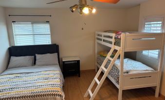 4 bedrooms: 1 bunk bed 1 queen bed and 3 king beds