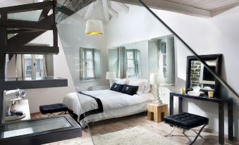 A couple with a kid . We visite the hotel last week . They gave us a tiny room with no view and an old dirty cot. The room inside was old not renovated. The mattress was old not to sleep . Extremely bad for your back. Bath tiny not for an average person. Floor with hear from the previous renters. Every single furniture was broken specially the glasses . Extremely dangerous for a kid. We left the next morning and then they offered an other room. Bad policy from the owners. Extremely expensive for what you taking. Excellent breakfast in an Excellent environment.