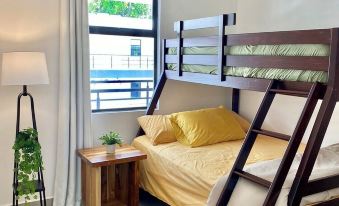 2 bedrooms: 1 bunk bed and 1 queen bed