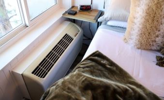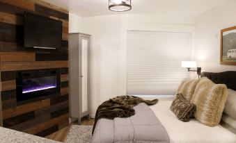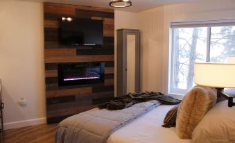 This is a newly remodeled condo with a built in fire place, cable TV, and Wifi. The efficient interior has a kitchenette with a half fridge/freezer, microwave, hotplate, and coffeemaker.