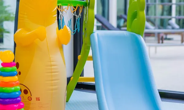 Modern Amenities: Guests enjoy air-conditioning, a kitchenette, balcony, and private bathrooms. Additional facilities include a lounge, 24-hour front desk, shared kitchen, indoor play area, outdoor seating, family rooms, bicycle parking, and free on-site private parking.