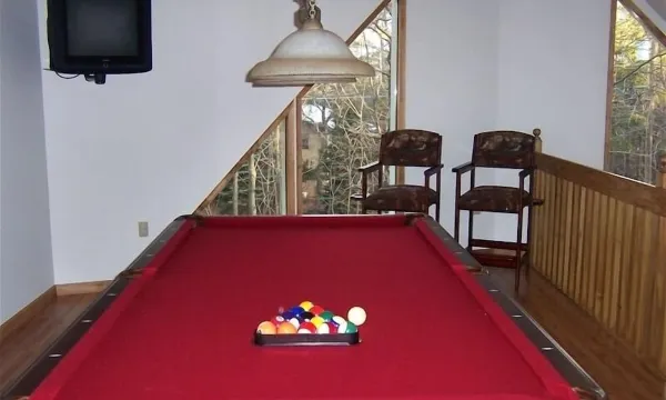 Available for weekend/weekly rentals. Exquisitely furnished with gas fireplace with stone ceiling to floor, cathedral ceilings,knotty pine floors 1st and 2nd level, one Huge 55 led Inch TV in the living room, one 32 inch TV in the master bedroom, a 20 inch TV in the other bedroom, and a 32 inch TV in the pool table room. For those who love pool, there is a eight foot real slate and wood pool table. There is a large wrap around deck with a gas grill, and a seven person hot tub.