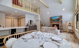 Escape to 'The Black Diamond' - a modern A-frame nestled in the Pocono Mountains. This stunning A-frame blends rustic-meets-mid-century design, offering couples, families and friends the perfect mix of warmth and adventure. After exploring waterfalls or skiing nearby slopes, unwind in the starlit hot tub, cuddle by the fireplace (with popcorn from the retro machine!), or soak in the soaking tub - every moment becomes unforgettable. Book your mountain getaway today! As you step through the front door, the soft glow of the indoor fireplace wraps you in a cozy embrace, setting the stage for an unforgettable escape. The open-concept living room features a plush sofa, a flat-screen TV, and even a popcorn machine—perfect for movie nights after a long day of adventure.