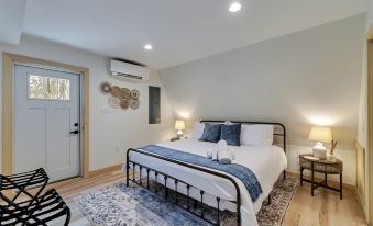 On the main floor, you’ll find a beautifully designed king-sized bedroom, offering a plush retreat with warm tones and cozy textures. The spa-like bathroom features a walk-in shower and a standalone soaking tub, inviting you to unwind in total relaxation.