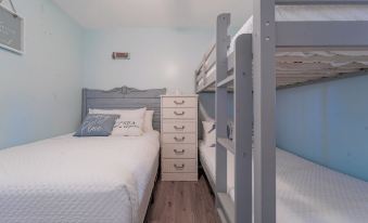 2 bedrooms: 1 bunk bed 1 king bed and 1 double bed