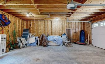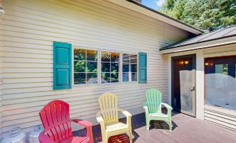 Just beyond the living room is a screened porch with another table for meals or board games and an open deck overlooking the yard. Run around with your kids outside, or head downstairs to the renovated game room to watch a Netflix movie, build a fire, or play foosball and air hockey.