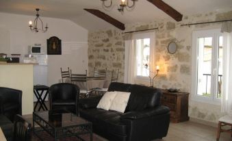 Enjoy a dream vacation in this spacious, bright and airy gîte of 75 m2, fully AIR CONDITIONED to ensure unparalleled comfort in the heat of summer. Located on the half-first floor of the house, it offers a large living /sitting area with 2 sofas, including a convertible one, 2 armchairs, coffee table, office table for your internet time. The spacious dining area is served by a kitchen (equipped with all modern comforts).