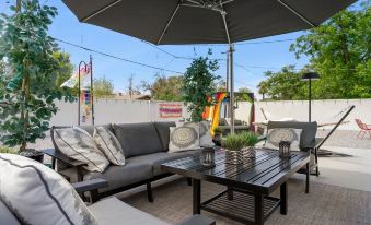 Lounge by the private pool during the day. Relax and unwind in the spa at night or by the fire pots. Totally private and clothing optional at all times from anyone outside the casita or main house. The casita has everything you will need for a restful stay. Close to the gay district of Phoenix, Melrose. Willy's Inn is geared towards gay men but all who are accepting are welcome. So there is no confusion, Willy's Inn was founded for gay men only but has been opened for anyone in the LGBTQ+ community and allies, but is geared towards gay men.About pets:No pets allowed.About checkOut:Check out before 11:00 AM.About children:Adults only.About customRules:If you plan on having any guests, please let me know beforehand. One or two is fine, but anymore than that without my approval is not permissible..About checkIn:Check in after 1:00 PM.About smoking:Smoking allowed: in designated areas.About minBookingAge:Minimum age to rent: 21.About events:No events allowed.They would have to be approved before the booking.