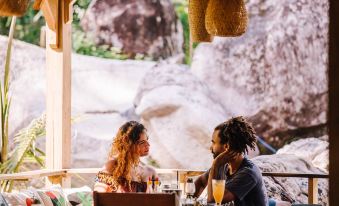 We couldn’t believe that we found this gem of a resort on the east side of the island with food of an exceptional high quality - better than the five-star resort that we were staying at previously. Jade Mountain Resort has the most panoramic and romantic restaurant on the entire island with a breath-taking sea view and a rain forest directly behind. It also has a stunning infinity pool with the backdrop of the sea. The six villas in the resort are beautiful and you will not get this sort of privacy and tranquility anywhere else on the island. The owners of the resort Christian and Trang are the perfect hosts. They both have great energy and are super passionate about the resort and have paid utmost attention to every detail. Trang is an exceptional chef and with her team cater for any dietary need and is able to cook extra healthy food options that are not on the menu - you only need to ask and she will whip up a delicious healthy meal. The pork schnitzel was exceptional as was the superfood salad and the fresh juice-based drinks were the best we had on the island. It is well worth taking a trip away from the highly touristic and overpopulated west side of the island just to come to this resort and experience this romantic, idyllic and peaceful haven within a rainforest with a memorable sea view that is less than a minute from the beach. I would recommend taking your suitcase with you too as after spending an hour or two dining or just for drinks at Jade Mountain resort you will not want to go back to the other side of the island even if you are staying in the best five star hotel!