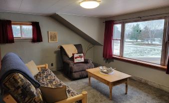 ( Bedding provided) Full kitchen including free coffee. Bathroom with shower, included towels. Ample parking for your trailers. Private entry above a country store open 4 days a week. This is a no smoking rental. We are on the atv/utv trail and the snowmobile trails. There are many excellent restaurants near by or everything you need to cook your own meals.About pets:No pets allowed.About checkOut:Check out before 10:00 AM.About children:Children allowed: ages 0-17.About checkIn:Check in after 3:00 PM.About smoking:Smoking is not permitted.About minBookingAge:Minimum age to rent: 24.About events:No events allowed.