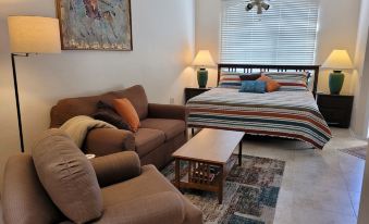 The simple studio apartment in Green Valley suited our needs as we were visiting family over the holidays and wanted our own place. We liked the quiet neighborhood location with nice walking and biking opportunities right from the front door. We especially enjoyed access to the community hot tub. We will plan to visit again!