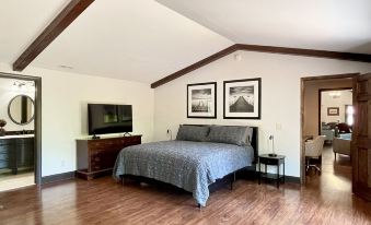 The Retreat House features the original hardwood floors through out the original main part of the home, LVP in the additions and tile in the bathrooms.