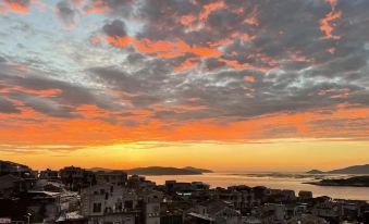 By day, sunlight scatters on the sea like pieces of gold foil, and the sea breeze—carrying a salty, moist aroma—drifts through the rooms. At dusk, the setting sun paints the mountains and sea in a warm orange glow, and the lights of the stone houses gradually 点亮,truly embodying the comfort and romance of the phrase "facing the sea, with spring flowers blooming".