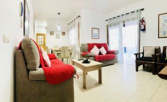 The house has a double bedroom with a bathroom with bathtub, bedroom with two single beds, a bathroom with shower, a fully equipped kitchen and a lounge with free Wifi and Smart-TV.