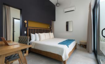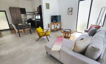 Discover our charming two-bedroom private house, set in a peaceful tropical environment. Perfect for those seeking both comfort and privacy, the home is part of a property that also includes four one-bedroom apartments, each reserved for two guests only. This ensures a serene, intimate atmosphere where you can enjoy your own private space while still having access to a shared pool surrounded by lush gardens.