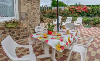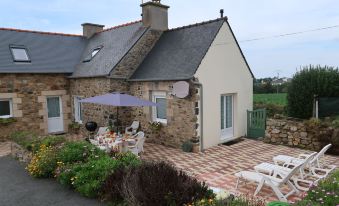 Cosy single-family house "Chez Yvonne", surrounded by meadows and fields. 1.3 km from the centre of Pleubian, 2.5 km from the centre of Lanmodez, outside the resort, 14 km from the centre of Paimpol, in a secluded, quiet position, 2 km from the sea, in a cul-de-sac, in the countryside. Private: property 3'000 m2 (fenced) with lawn and wildlife garden. In the house: storage room for bicycles. Parking (for 3 cars) on the premises. Shop 1.3 km, supermarket 1.6 km, bus stop 2 km, sandy beach "Kermagen" 2 km. Please note: animals in the neighbourhood. "Chez Yvonne", 3-room house 100 m2 on 2 levels. Cosy furnishings: living room with 1 sofabed, satellite TV, flat screen, CD-player and DVD. Exit to the patio. Kitchen (oven, dishwasher, 4 ceramic glass hob hotplates, toaster, kettle, microwave, freezer, electric coffee machine) with TV. Shower, sep. WC. Upper floor: 1 room with sloping ceilings with 1 french bed (140 cm, length 190 cm). 1 room with sloping ceilings with 2 beds (90 cm, length 200 cm). Sep. WC. Electric heating. Terrace. Terrace furniture, barbecue (portable), deck chairs (3), sitting area, box-room. Facilities: washing machine, dryer, iron, children's high chair, baby cot, hair dryer. Internet (WiFi, free). Please note: non-smoking house. Maximum 2 small pets/ dogs allowed. Smoke alarm.
