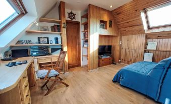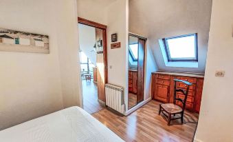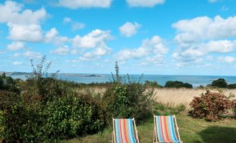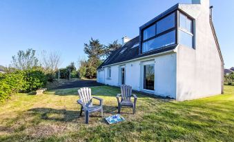 Single-family house "Ti Loïk", surrounded by meadows and fields. In the hamlet Kervor 1 km from the centre of Plouézec, 12 km from the centre of Plouha, 6 km from the centre of Paimpol, in an elevated position, 1.3 km from the sea. Private: garden 1'000 m2 with wildlife garden, meadow, parking (for 3 cars) on the premises. Shop 1 km, grocery 1 km, supermarket 1 km, restaurant 1 km, bakery 1 km, bus stop 6 km, sandy beach "Plage Bréhec" 4.3 km. Sports harbour 7 km, golf course (18 hole) 20 km, indoor tennis centre 8 km, walking paths from the house 1.3 km. Nearby attractions: Ile de Bréhat 12 km, Abbaye de Beauport 4.5 km, Pointe de Bilfot 3.5 km. "Ti Loïk", 5-room house 100 m2 on 2 levels. Bright, beautiful and cosy furnishings: 1 room with 1 french bed (140 cm, length 190 cm). Dining room with dining table and wood-burning stove. Exit to the garden. Open kitchen (oven, dishwasher, 3 induction hot plates, toaster, kettle, microwave, freezer, electric coffee machine). Shower, sep. WC. Upper floor: living room with sloping ceilings with rooflight with 1 double sofabed (140 cm, length 190 cm), TV, radio, CD-player, hi-fi system and DVD. Walk-through room with 1 french bed (140 cm, length 190 cm). Interconnecting room with 2 beds (90 cm, length 190 cm). Sep. WC. Electric heating. Terrace furniture, barbecue (portable), deck chairs (4), box-room. Beautiful view of the sea. Facilities: washing machine, iron, children's high chair, baby cot. Internet (WiFi, free). Please note: non-smoking house. Smoke alarm.