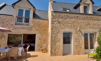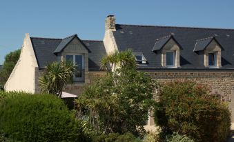 Apartment block "Belle Longère Bretonne". 5 houses in the residence. In the hamlet Le Monteno 5 km from the centre of Plouhinec, 900 m from the sea. For shared use: property 4'000 m2, lawn, courtyard. Children's playground, parking on the premises. Shop 5 km, bus stop 12 km, sandy beach "Kervégant" 900 m. Surf school 1 km. Nearby attractions: Ria d'Etel 1 km, Port Louis 12 km, Gâvres 13 km, Carnac (Megalithes) 19 km, Auray 20 km, Lorient 23 km. Hiking paths: GR34. "Tazie", 4-room house 110 m2 on 2 levels. Beautiful furnishings: living/dining room with open-hearth fireplace, dining table, satellite TV, international TV channels and radio. Exit to the terrace. 1 room with 1 french bed (140 cm, length 190 cm). Open kitchen (4 hot plates, oven, dishwasher, microwave, freezer, electric coffee machine). Shower, sep. WC, double hand-basin. Upper floor: 1 room with sloping ceilings with 1 french bed (140 cm, length 190 cm). 1 room with sloping ceilings with 2 beds (90 cm, length 190 cm). Shower, sep. WC. Electric heating. Terrace 25 m2. Terrace furniture, barbecue. Facilities: washing machine, dryer, baby cot. Internet (WiFi, free). Please note: non-smokers only. Maximum 1 pet/ dog allowed. Smoke alarm.