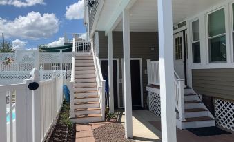 The 3 Bedroom Accommodation on the first floor has 2 Queen Bedrooms and 1 bedroom with two Twin Beds. There are also 2 sitting rooms on the enclosed front porch each has its own A/C Unit. The property has 3 bathrooms with showers, one on each floor and one outside in the backyard by the pool. The bottom floor also has a screened in porch with a small dining and seating area overlooking the pool.There are also Queen Size sofa beds in both Living Rooms.About pets:No pets allowed.About checkOut:Check out before 10:00 AM.About children:Children allowed: ages 0-17.Must bring own crib if needed.About checkIn:Check in after 3:00 PM.About smoking:Smoking is not permitted.About minBookingAge:Minimum age to rent: 25.About events:No events allowed.