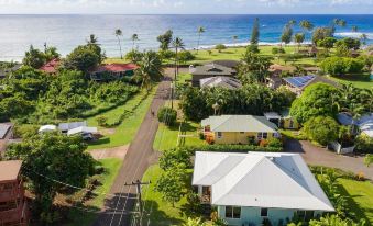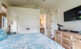 The home offers two master suites with large walk-in showers, plush king beds, ample closets, smart TVs and access to the double outdoor shower. Step out through the indoor shower to the outdoor shower to shower under the star filled Hawaiian sky. Come spend time on the spacious covered lanai, which opens up to the indoor spaces through a folding glass wall that allows the indoor and outdoor spaces to truly become one. Eat at the outdoor dining table and relax in the cool trade winds while catching a glimpse of our beautiful Hawaiian waters or watching the widescreen TV in the living room. The cottage’s gourmet kitchen is equipped with a gas range, Kitchen Aid appliances, granite countertops, open shelving and a Keurig for your favorite hot drinks. Enjoy the convenience of a full laundry, which includes a large capacity washer and dryer and a deep laundry room sink with ample countertop space.