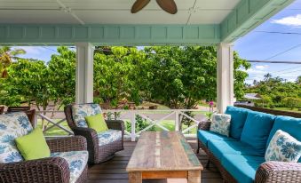 The Sea Glass Cottage offers an unforgettable Garden Isle vacation. This custom-designed Hawaiian style Cottage is located just steps from Poipu Beach. The 2-bedroom, 2 bath Sea Glass Cottage graciously combines the beauty and simplicity of a classic Hawaiian home with all the conveniences of the 21st century. The cottage melds seamlessly with the historic neighborhood and the adjacent ancient Hawaiian Village. Its airy and open island style mixes old Hawaii and modern luxury.