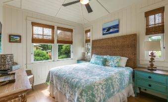 Whether inside or outside, the cottage is designed to provide relaxation and comfort. Ceiling fans enhance the island trade winds in keeping the cottage cool. The abundant landscaping highlights the scents and beauty of Hawaiian plants. Just steps from Poipu Beach, guests begin the day watching the sunrise from the lanai while enjoying your morning cup of coffee, followed by a day of beach activities and ending the day with drinks on the lanai and steaks on the outdoor grill. All beach amenities including beach chairs, boogie boards, a cooler, a beach wagon and beach towels for your day at the beach are provided for your use.