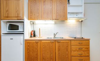 Huhmari 21 is a charming, small rental cabin situated in the Holiday Centre Huhmari. The area offers outdoor trails, a children’s playground, a shared swimming beach, and a covered cooking area. In the summer of 2025, a lakeside restaurant will open in Huhmari.